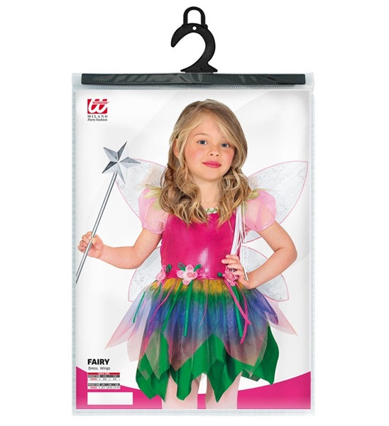 Einfach zauberhaft! Das kleine Blumenfee Kinder Kostüm besteht aus einem wunderschönen bunten Kleid mit Überrrock aus Tüll und passenden Flügeln.