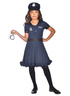 Das Kinderkostüm Kleine Polizistin Anna, bestehend aus einem blauen gerüschten Polizeikleid, einem Gürtel und einer passenden Polizeimütze mit Abzeichen, macht Ihre Kleine zur Chefin auf jeder Kinderfaschingsparty