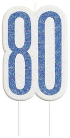 Kuchen Kerze Blue Dots Glitzer zum 80. Geburtstag