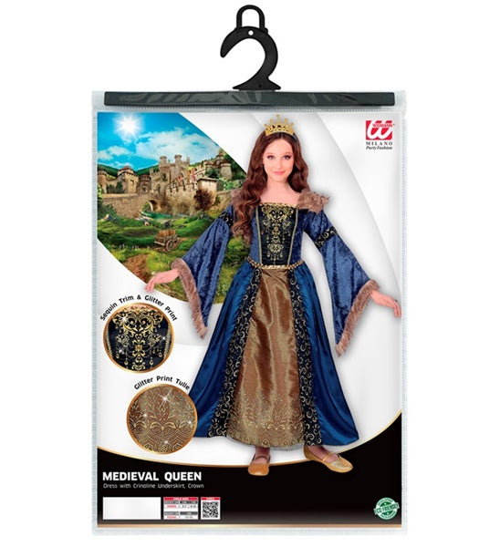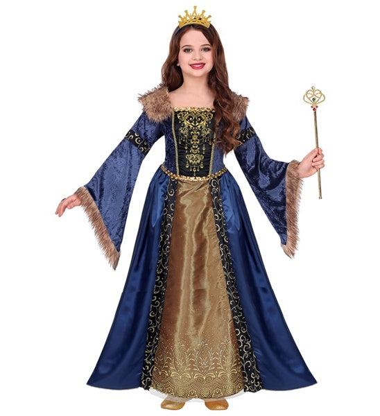 Mit dem Maggie Mittelalter Königin Kinder Kostüm kannst du für einen Tag zur mächtigen Königin über dein Königreich werden. Mit dem edlen Kleid, in wunderschönen blau und gold Farben wirst du umwerfend aussehen und zugleich deine königliche Macht zur Schau stellen. Im Lieferumfang ist alles enthalten, was es als Königin braucht; das Kleid mit Unter- und Reifrock, sowie die Krone.