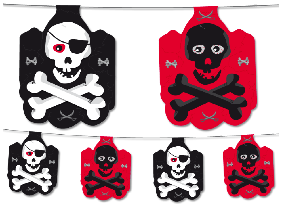 Wimpelkette – Pirat , mit schwarzem und roten Totenkopf, Wimpel beidseitig bedruckt Gesamtlänge ca. 3,5 m