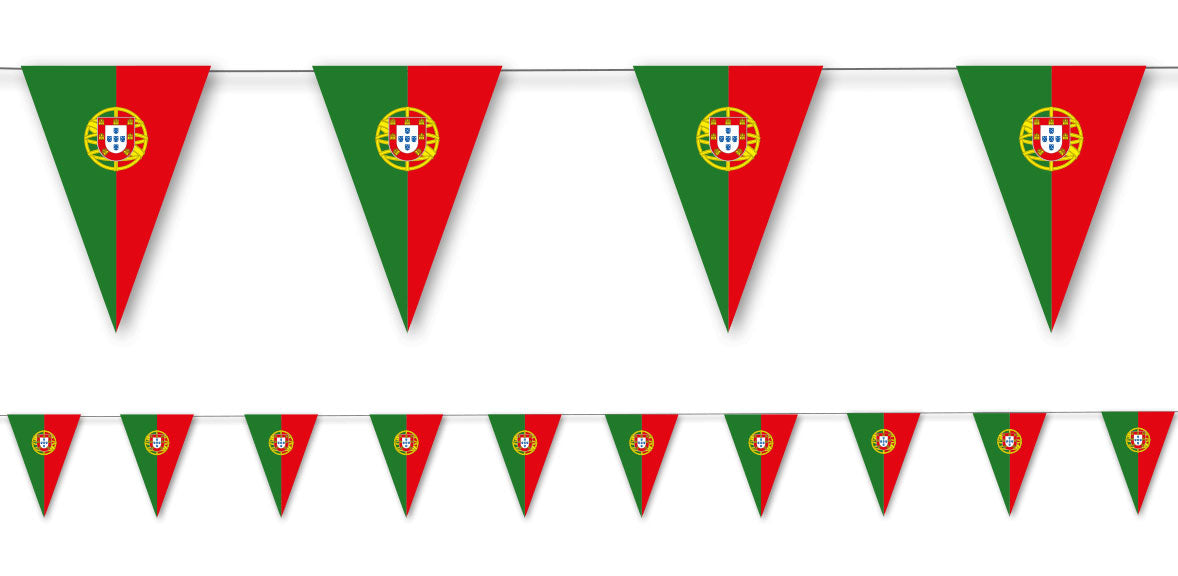 Mach dein Wohnzimmer bereit für die WM und EM mit unserer tollen Portugal Wimpelkette Lissabon. Die Wimpelkette besteht aus Papier und ist daher umweltfreundlich. Sie hat eine Länge von 3,5m und die Wimpel sind 19cm groß.