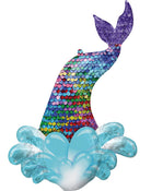 Mit dem Rainbow Mermaid Folienballon 99cm machst du jedem Meerjungfrauen-Fan eine große Freude! Die bunt funkelnde, glitzernde Meerjungfrauenflosse verschwindet in einem Wasserschwall, als wäre die Meerjungfrau eben im Meer verschwunden. Hinweis: der Folienballon ist heliumgeeignet.