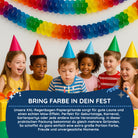 Kunterbunt wie ein Regenbogen erstrahlt unsere Regenbogen XXL Papiergirlande. Die 6m lange Girlande ist perfekt für Geburtstage, KarnevalGartenpartys und Hawaii Mottos.