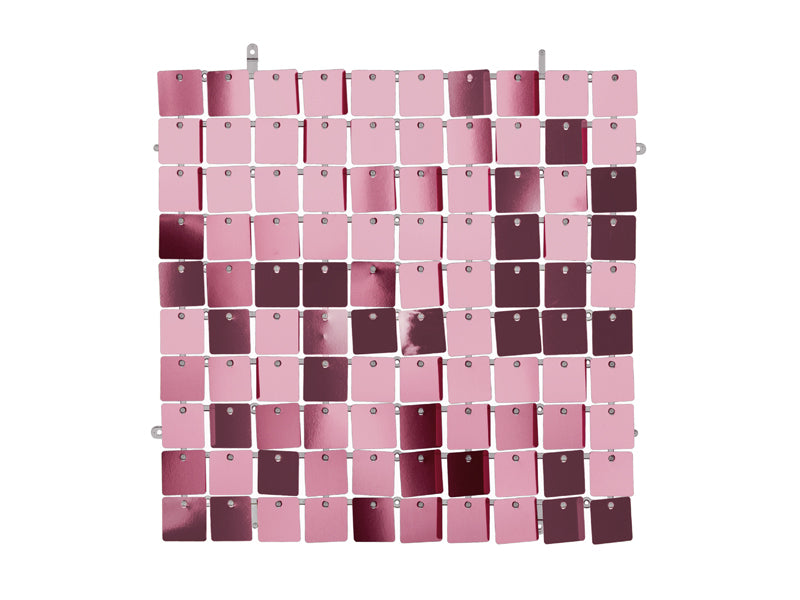 Pailletten-Hintergrundplatte, Pailletten in Form eines Quadrats, in helles Rosa, Größe ca. 30x30 cm. Die Pailletten-Paneele sind an den Seiten mit Druckknöpfen versehen, mit denen sich die quadratischen Paneele zu einer zusammenhängenden Einheit verbinden lassen - siehe Anleitung auf dem Produktblatt. Die zusammengefügten Platten passen perfekt auf den Ständer SNT5-150-019, der mit einer Angelschnur befestigt werden kann. Die Paneele erzeugen dank der Flügel, die sich durch die Luftbewegung bewegen, einen erstaunlichen Effekt.