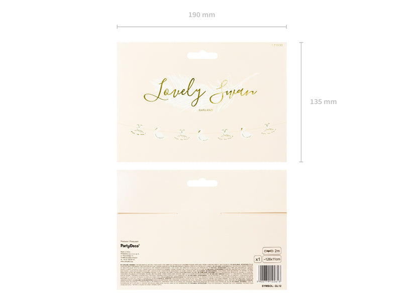 Für einen Hauch von Anmut und Eleganz ist die Schwanensee Girlande perfekt. Mit ihren 1,26m Länge und 11cm Breite verleiht sie deiner Dekoration eine raffinierte Note. Die Schwan-Motive fügen deinem Event einen märchenhaften Touch hinzu.