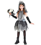 "Skelett Braut Mädchenkostüm" (Kleid, fingerlose Handschuhe, Brautschleier)