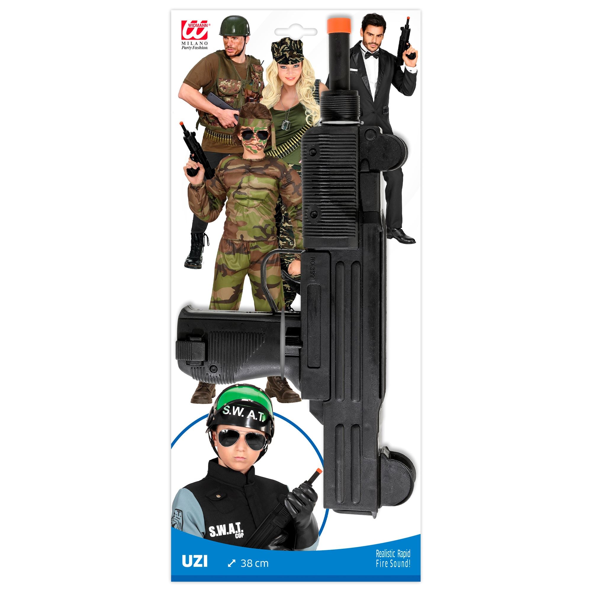 Unterwegs in geheimer Mission? Dann ist das Soundeffekt UZI Maschinengewehr genau das richtige für dich! Das Gewehr lässt sich für ganz unterschiedliche Zwecke einsetzen; als Undercover-Spion, für Gangster Bosse und für militärische Kostüme. Außerdem ist dieses Maschinengewehr mit Sound ausgestattet und macht dein Kostüm somit perfekt! Also los zur nächsten Mission!