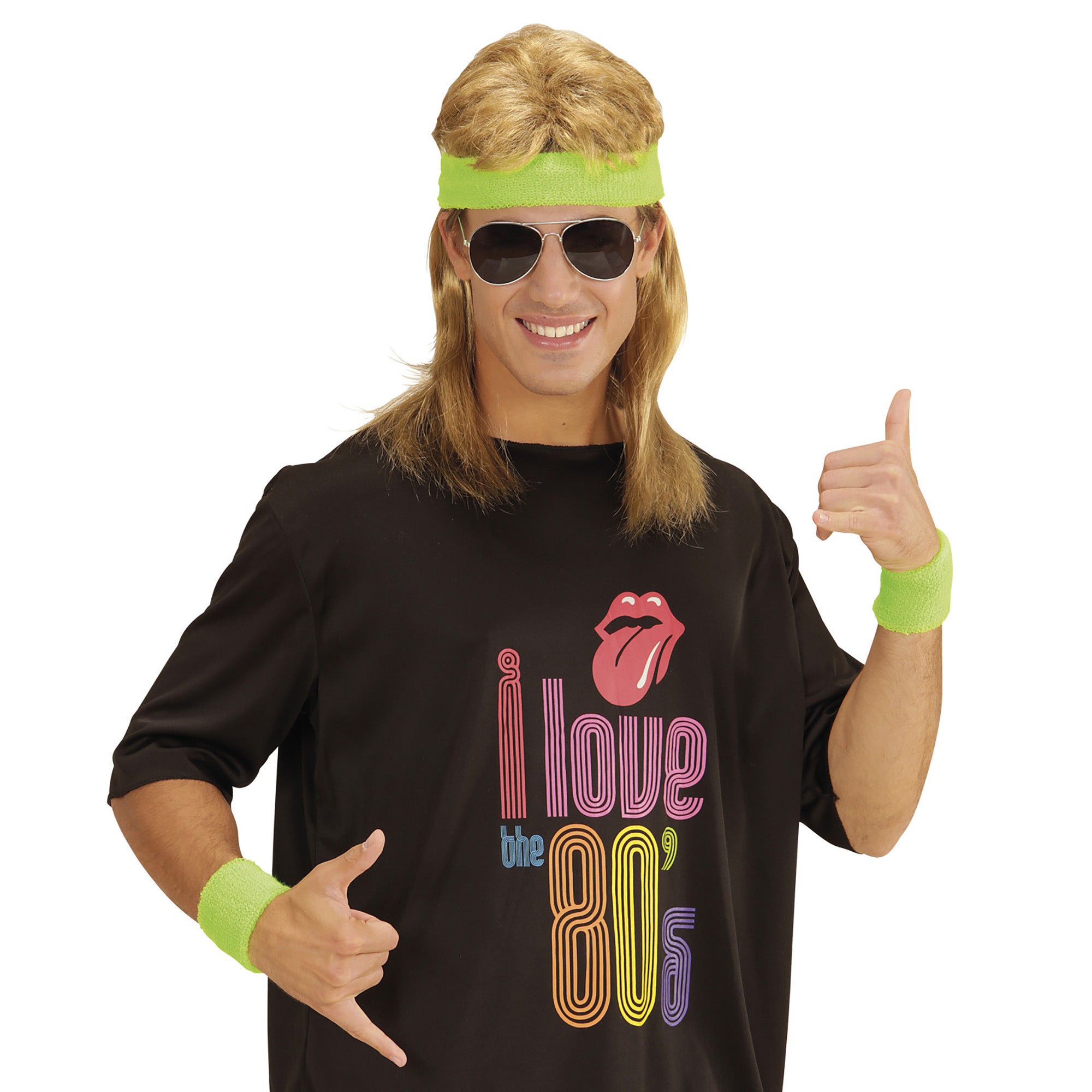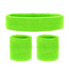 Mit dem Stirnband & Schweißbänder Set in grün bist du bestens ausgestattet für die kommende 80er Jahre Party! Im Set sind 2 Schweißbänder für die Armgelenke sowie ein Stirnband enthalten.