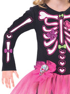 Das niedliche Sweet Skeleton Girl Kinder Kostüm ist die perfekte Verkleidung für kleine Mädchen, die an Halloween zahlreiche Süßigkeiten einsammeln wollen. Das Kostüm besteht aus einem bedruckten Overall mit Tutu und einem farblich passenden Haarreif.