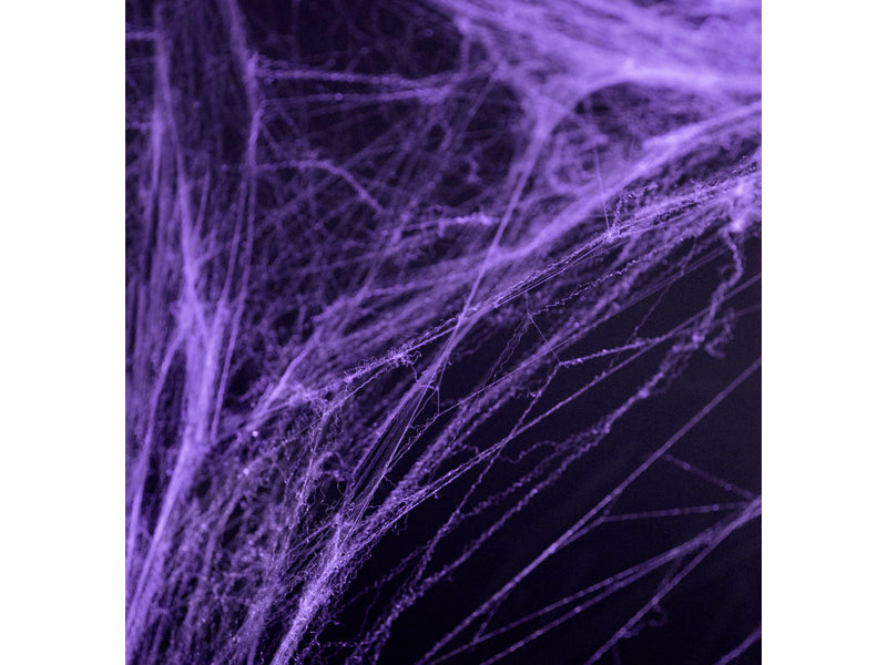 Kaum eine Halloween-Deko ist so effektvoll wie geheimnisvolle Spinnweben! Unsere violetten Horror Spinnweben sorgen für besonders gruselige Momente. Um den klassischen Spinnennetz-Look zu kreieren, ziehe das kompakte Netz so lange auseinander, bis du mit der gewünschten Dicke und Optik zufrieden bist. Besonders schön wirkt das Netz, wenn du es mit bunten LED-Lampen anstrahlst und Spinnen hineinsetzt. Wir schicken dir zwei gruselige Kunststoff-Spinnen mit, die eine Größe von etwa 4cm haben.