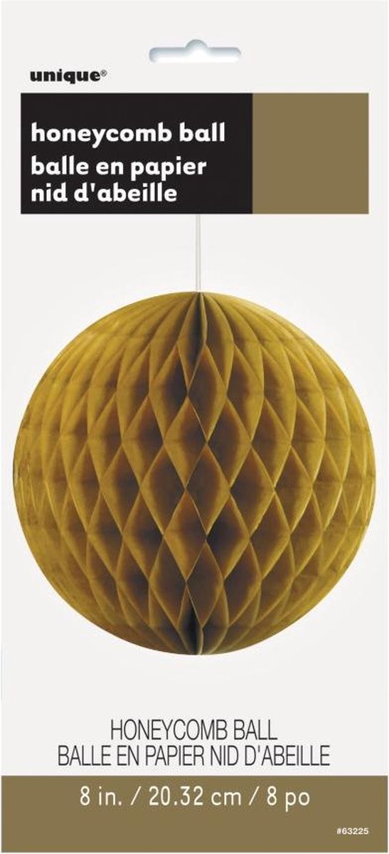 Die "Wabenball Dekoration Gold" ist die perfekte Dekoration für deine nächsten Feierlichkeiten! Der 20cm große Wabenball lässt sich ganz einfach durch doppelseitiges Klebeband zusammenkleben und besitzt ein Band, mit welchem sich der Ball ganz leicht aufhängen lässt. Durch das hochwertige Tissue Papier ist dieser goldene Wabenball für verschiedenste Anlässe geeignet, beispielsweise als schicke Deko auf Jubiläumsfeiern oder auch auf Hochzeiten.