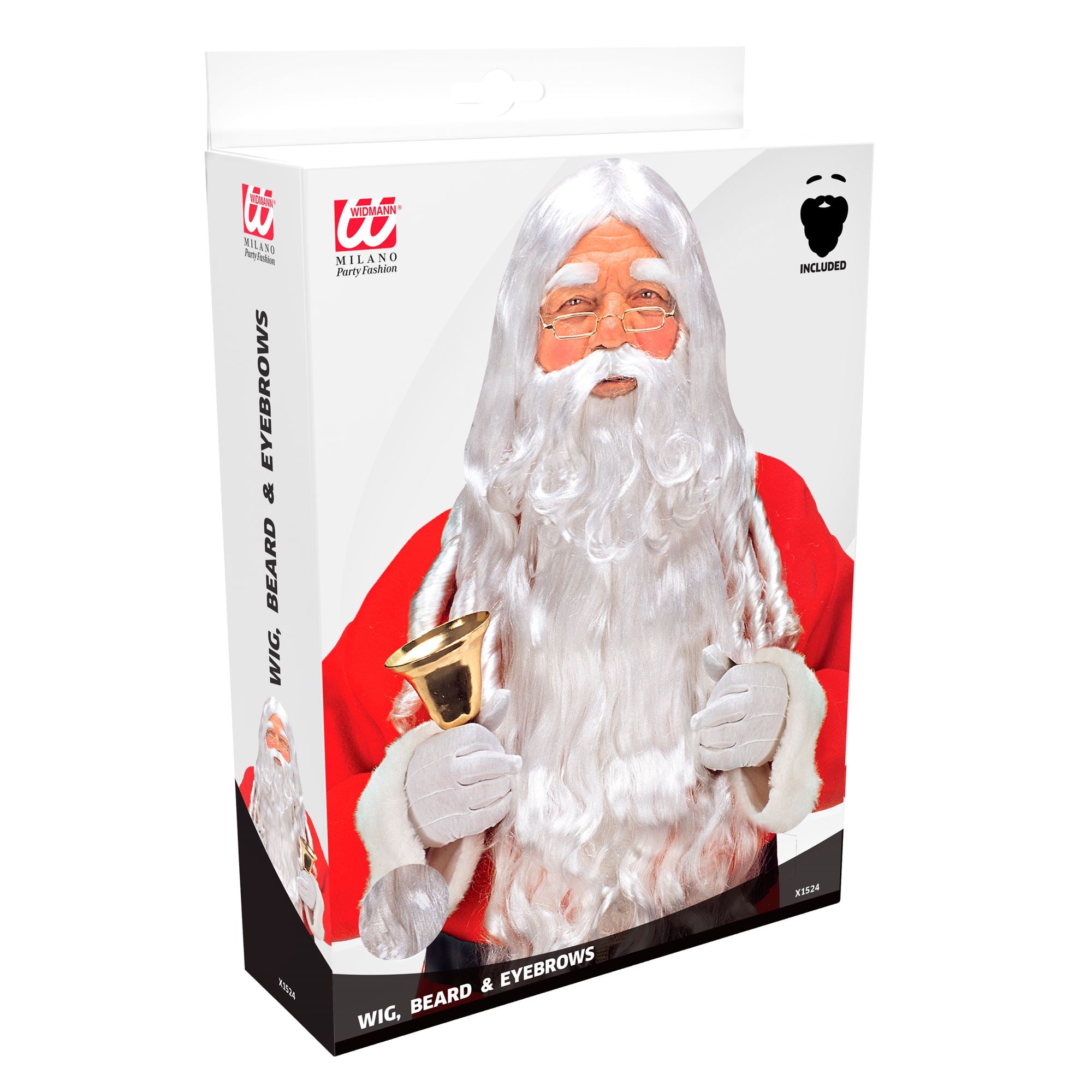 Das Weihnachtsmann Verkleidungsset Deluxe  besteht aus der Perücke, dem sehr langen Bart mit Locken sowie den Augenbrauen. Ideal für Nikolaus und Weihnachtsmann.
