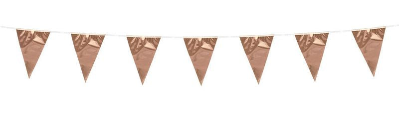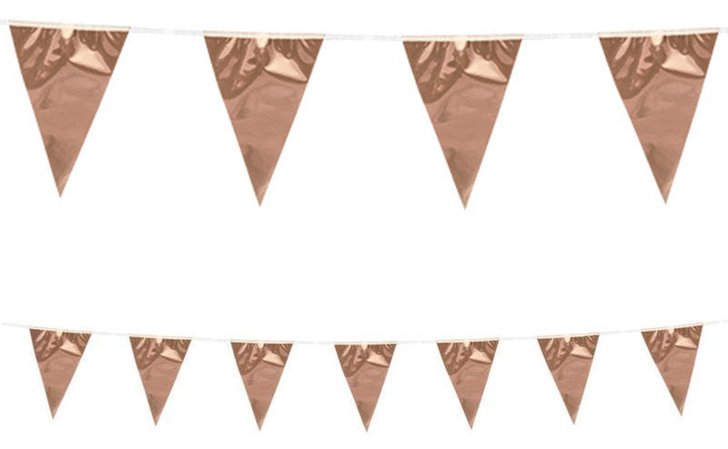 XL Wimpel Girlande aus Folie in Rosegold Metallic 10 Meter