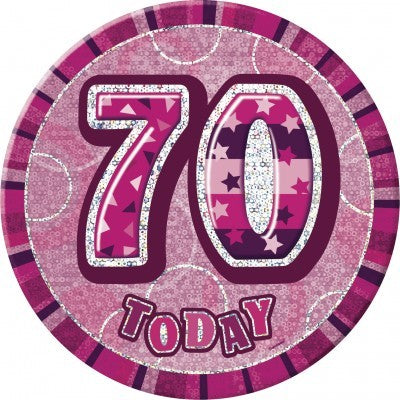 XXL Glitzer Button 70. Geburtstag Pink