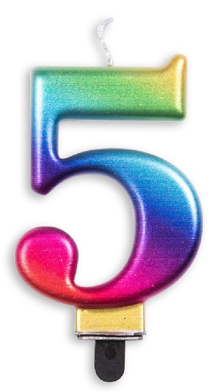 Zahlenkerze Regenbogen Metallic 5