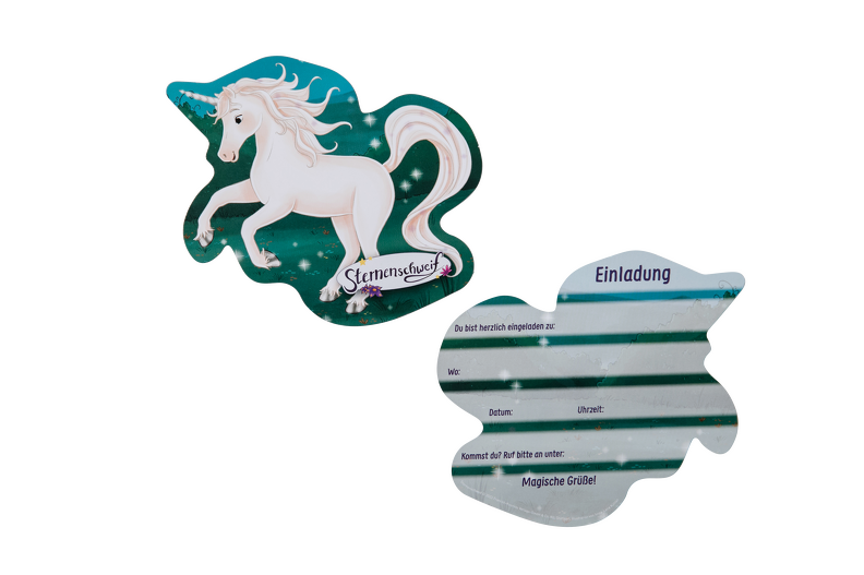 8 Einladungen im Sternenschweif Design , 400 g Karton , beidseitig bedrucktgestanzt