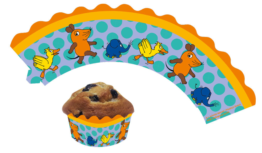 Hier kommt die Maus! Diese tollen 12 Sendung mit der Maus Muffin Banderolen machen aus einfachen Muffins einen richtigen Hingucker. Sie sind 3-fach größenverstellbar, haben eine Höhe von 5cm und können einfach um die fertig gebackenen Muffins oder Cupcakes herum gelegt und mit der Lasche befestigt werden.