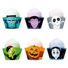 Enthalten sind 6 Stück Cupcake-Förmchen mit Zombie-, Frankenstein-, Vampir-, Skelett-, Kürbis- und Vampirmotiven. Das perfekte Set für eine Kinder-Halloween-Party.