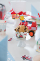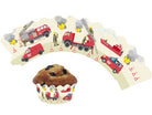12 Deko-Banderolen für Muffins und Cupcakes im Feuerwehr Design. Die Banderolen sind gefertigt aus 170g Papier und auf 3 Größen einstellbar