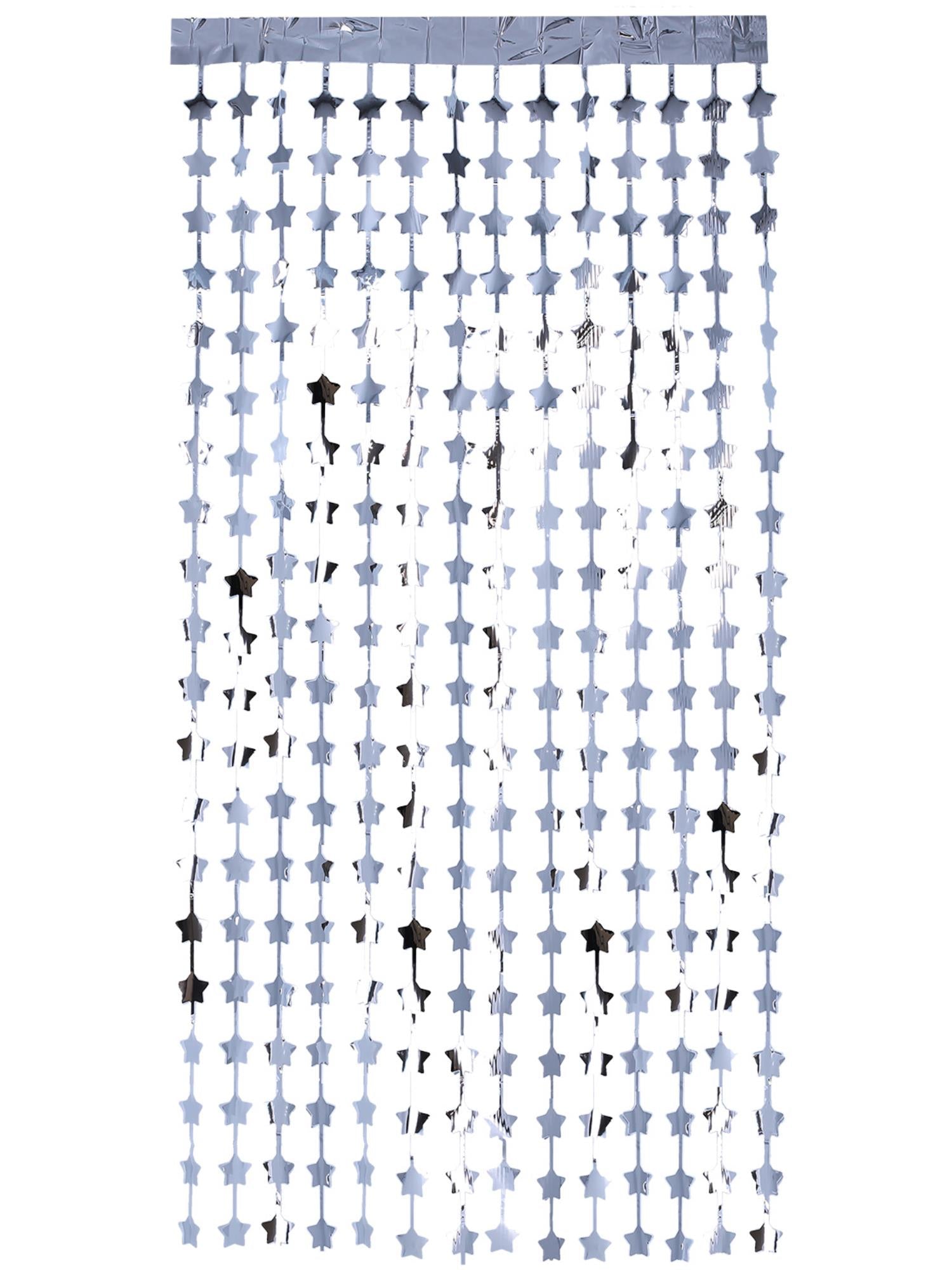Star Foil Curtain Backdrop, Silver, 190x91cm/ 74x36in