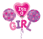 Geliefert werden vier miteinander verbundene Folienballons: Einen großen Herz-Folienballon mit "It's a"-Aufdruck (der Schriftzug "Anagram" steht nicht auf dem Ballon), zwei runde Folienballons und einen "GIRL"-Folienballon. Die runden Folienballons werden durch zwei Sticker an dem Stern-Folienballon fixiert.