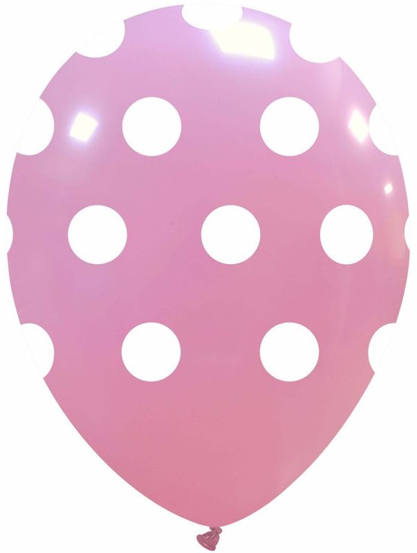 6 Luftballons in Rosa mit weißen Punkten 30cm