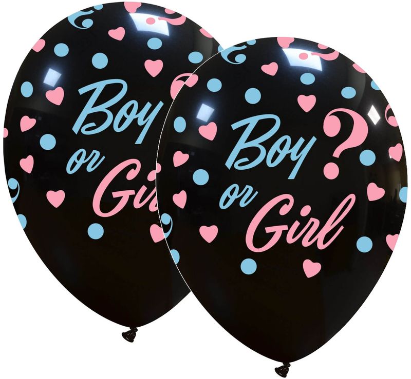 6 schwarze Luftballons für die Babyparty Boy or Girl 30cm