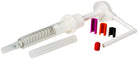 Schwebezeitverlängerers schrauben. Danach lässt sich das Gel durch Drücken der Pumpe ganz einfach auf dem Latexballon verteilen. Die Pumpe lässt sich mehrfach verwenden. Dazu wird verschiedenes Zubehör geliefert. Der transparente Verlängerungsstab kann an das untere Ende der Pumpe gesteckt werden, um die Reste des Gels zu erreichen. Die bunten Stäbe in verschiedener Größe können an den Pumphahn angesteckt werden um die Menge des Gels anzupassen. Die kleinen roten Kapseln können zum Verschließen des Hahns eingesetzt werden.