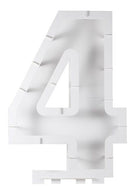 Der Befüllbare Zahl 4 Ballonstand ist ein beeindruckendes Dekorationselement für besondere Anlässe wie Geburtstage, Jubiläen oder Feierlichkeiten, bei denen die Zahl 4 im Mittelpunkt steht. Dieser weiße Stand ermöglicht es dir, die Zahl 4 kreativ zu gestalten, indem du ihn mit Ballons, Blumen oder anderen Dekoelementen befüllst. Der stabile Papprahmen ist 81 x 58 x 14cm groß. Ob als Teil einer Zahlenkombination oder als Einzelstück: Dieser Ballonstand bietet eine originelle und festliche Möglichkeit, deine Feier in Szene zu setzen.