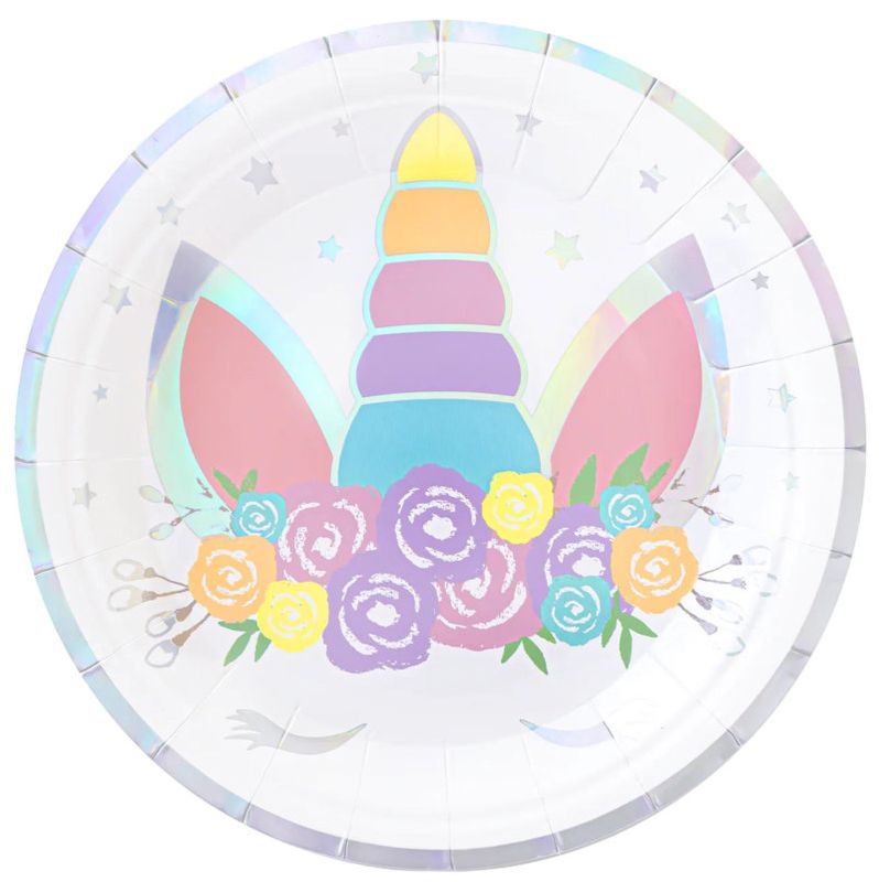 6 kleine Papp Teller Baby Einhorn 18cm