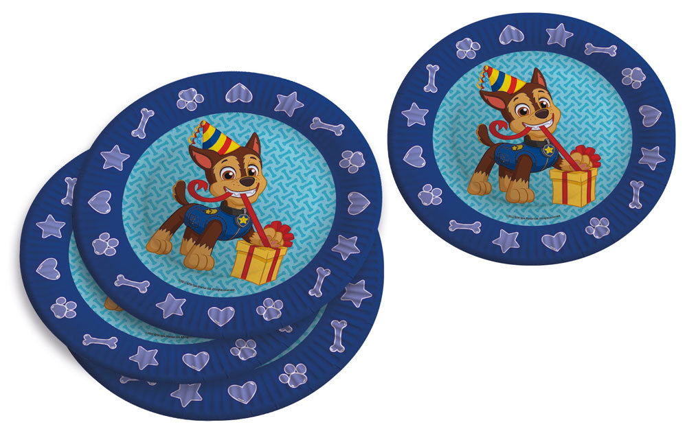 Die Partymeute auf einem Paw Patrol Geburtstag ist hungrig? Ein klarer Fall für Chase! Die 6 Teller haben eine Größe von 23cm sind in Blau gehalten und mit einer Chase Abbilkdung bedruckt.