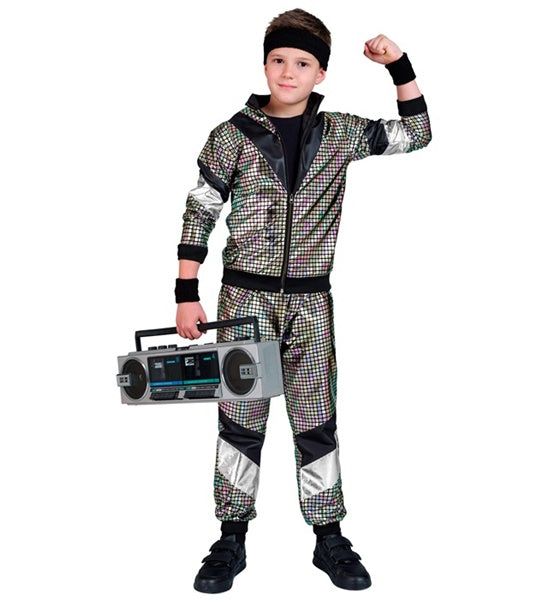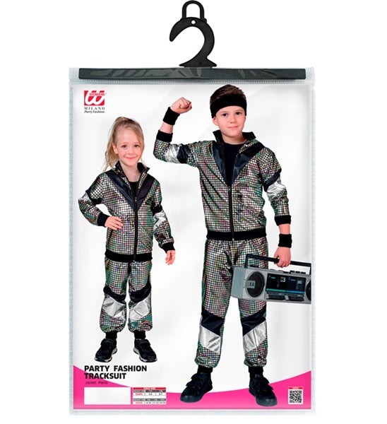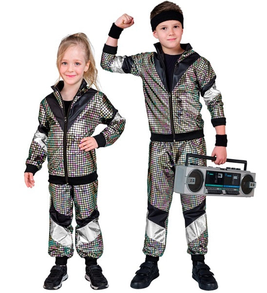 Der holografisch leuchtende 80er Jahre Disco Jogginganzug für Kinder ist ein Highlight auf jeder Faschings- oder Karnevalsparty!