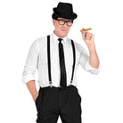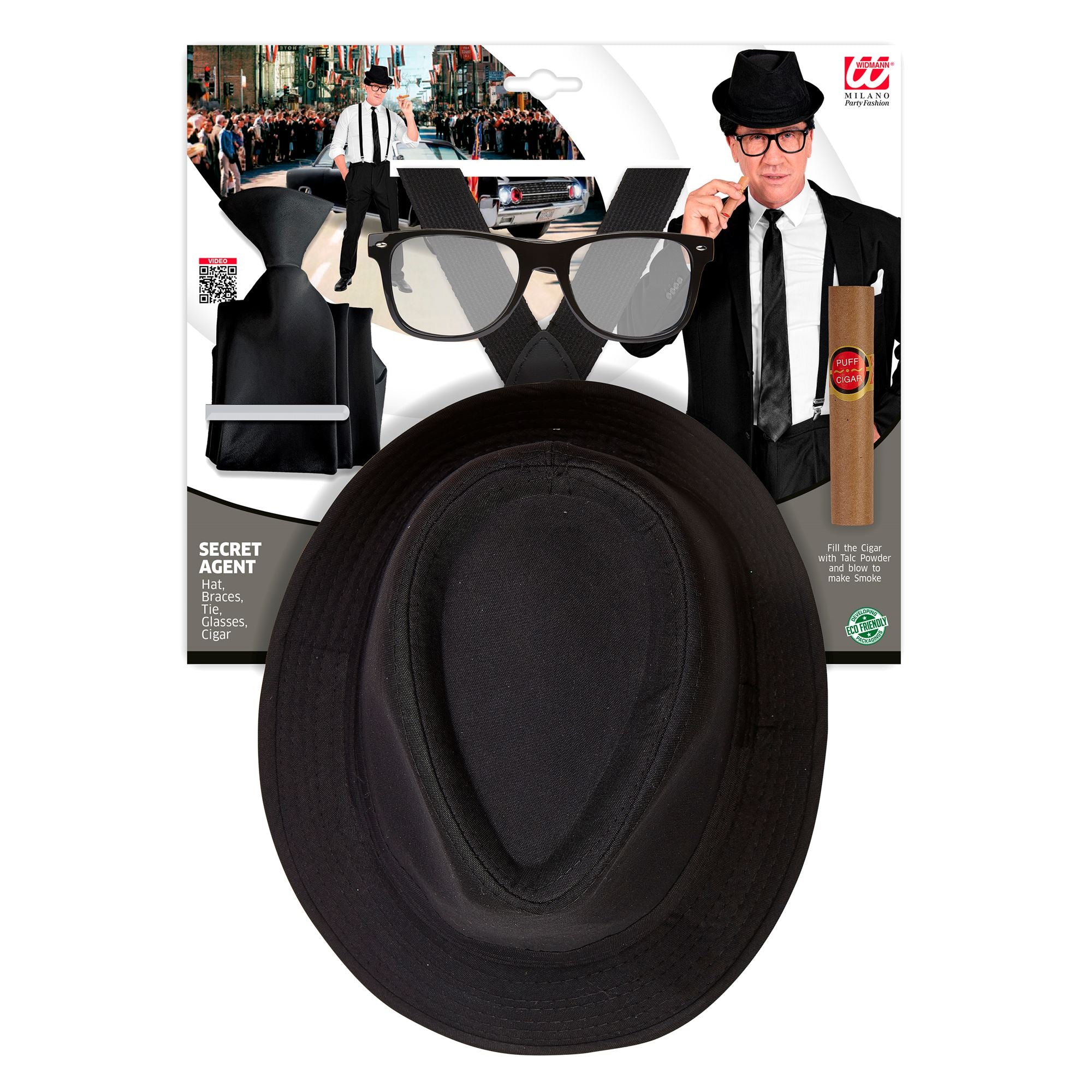 Ein schwarzer Anzug, dazu ein weißes Hemd und dieses 5-teilige Agenten-Accessoires-Set - fertig ist der kluge Kopf, der Verbrecher hinter Gitter bringt. Im Set enthalten sind ein schwarzer Hut, schwarze verstellbare Hosenträger, eine schwarze Krawatte sowie eine Brille und die obligatorische Zigarrenattrappe.