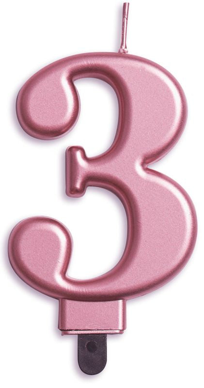 Rosegoldene Zahlenkerze Metallic Zahl 3