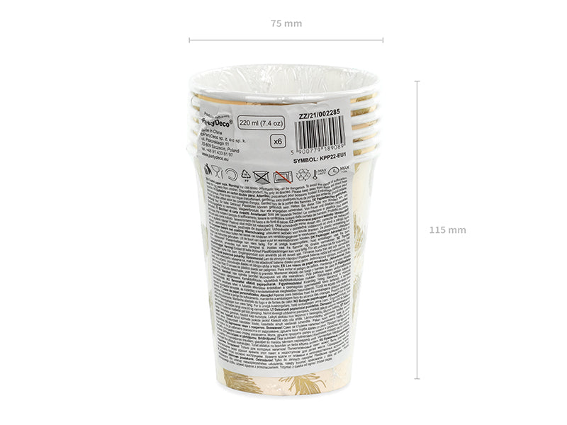 Lovely Swan Papierbecher in Hellrosa mit goldenem Federmuster, Fassungsvermögen ca. 260 ml . Die Getränkebecher müssen die Kennzeichnung gemäß der Durchführungsverordnung (EU) 2020/2151 der Kommission vom 17. Dezember 2020 zur Festlegung von Vorschriften über harmonisierte Spezifikationen für die Kennzeichnung von Einwegkunststoffprodukten, die in Teil D des Anhangs der Richtlinie (EU) 2019/904 des Europäischen Parlaments und des Rates über die Verringerung der Umweltauswirkungen bestimmter Kunststoffprodukte aufgeführt sind, enthalten. Das Produkt enthält ein Etikett nur in Polnisch, Deutsch, Tschechisch, Französisch, Niederländisch, Slowakisch, Slowenisch und Bulgarisch. (1 VPE / 6 Stk.)