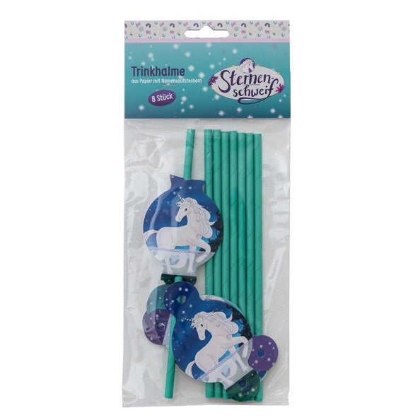 8 Papier Trinkhalme Sternenschweif mit Namensaufstecker 195 x 5 mm