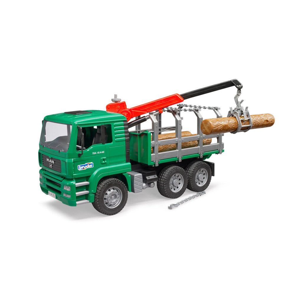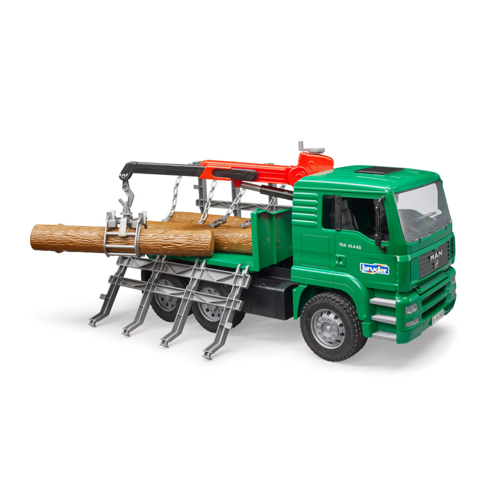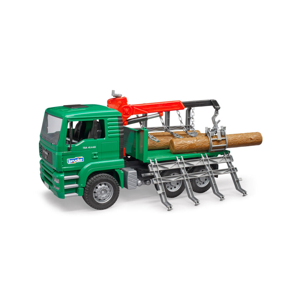 bruder Holztransport-LKW MAN mit Ladekran grün 1:16