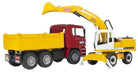 bruder Kipp-LKW MAN TGA mit Schaufelbagger gelb/rot 1:16