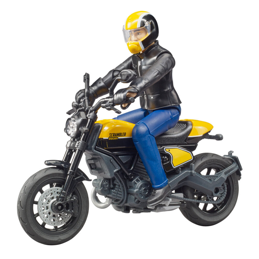 bruder Motorrad Ducati Scrambler Full mit Figur schwarz/gelb 1:16