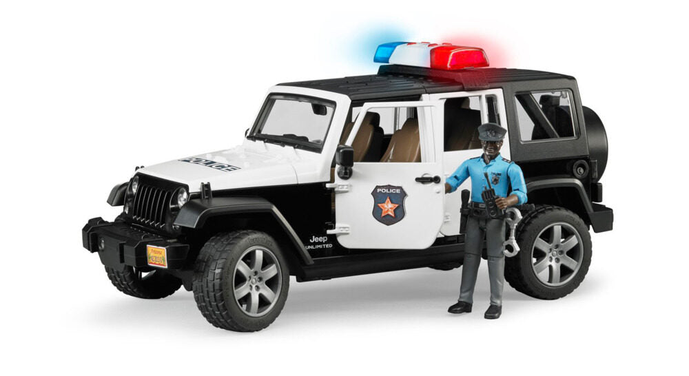 bruder Polizei Jeep Wrangler Rubicon mit Figur schwarz/weiß 1:16 Licht/Sound Modul