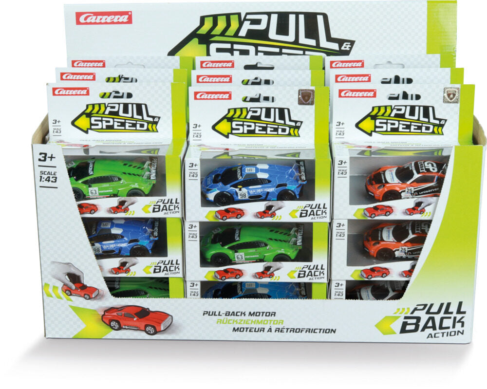 Carrera Fahrzeuge Pull & Speed GT Racers 4fach sortiert