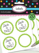 20 selbstklebende Etiketten mit Blütenrand kiwigrün