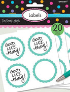 20 selbstklebende Etiketten mit Blütenrand türkis