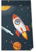 Diese 4 Space Rocket FSC Papiertüten sind als Mitgebsel Tüten perfekter Abschluß einer jeden guten Weltraum Party. Die Tüten messen eine Größe von etwa 33,5 x 19 cm und sind mit Weltraum Motiven bedruckt.