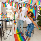 Biete deinen Gästen mit dem Regenbogenparty-Läufer einen farbenfrohen und extravaganten Auftritt! Mit einer Breite von 60cm und einer Länge von 4,5m kann jeder Partygast stilvoll über den selbsthaftenden, dekorativen Teppich schreiten. Die leuchtenden Regenbogenfarben bringen Freude und Vielfalt in jede Veranstaltung.