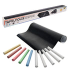 Verwandle jede glatte Oberfläche in eine Schreibtafel mit dieser praktischen, selbstklebenden Tafelfolie! Die Folie im Format 45x200 cm haftet sicher und lässt sich einfach anbringen – ideal für Notizen, Planungen oder kreative Zeichnungen. Mit den 10 mitgelieferten Kreiden kannst du sofort loslegen und die Tafelfläche individuell gestalten. Die Folie lässt sich einfach abwischen, sodass du sie immer wieder neu beschriften kannst.