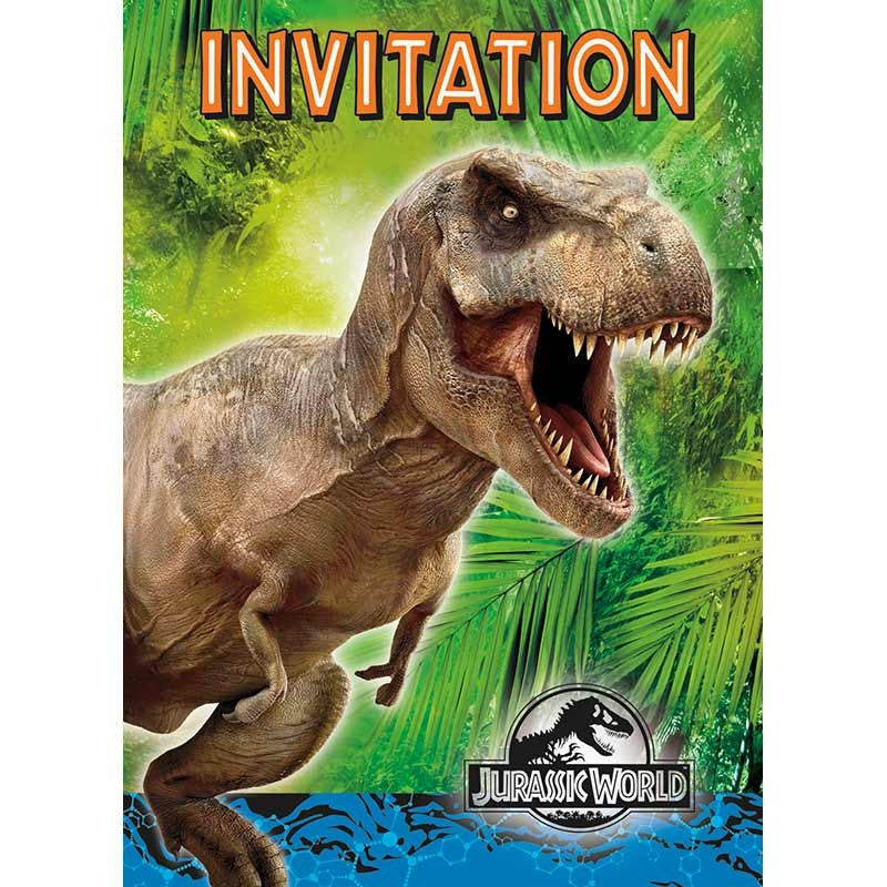 Um deine Gäste passend zum Motto einzuladen brauchst du natürlich die passenden Einladungskarten. Die Jurassic World Einladungskarte lässt keine Fragen offen. Im Set enthalten erhältst du 8 Karten mit tollem T-Rex Aufdruck.