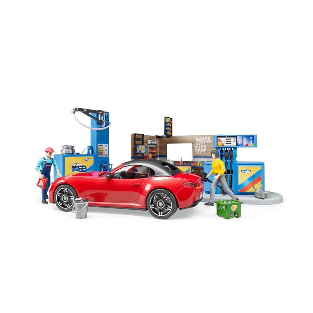 bruder bworld Tankstelle mit Fahrzeug und Zubehör 1:16