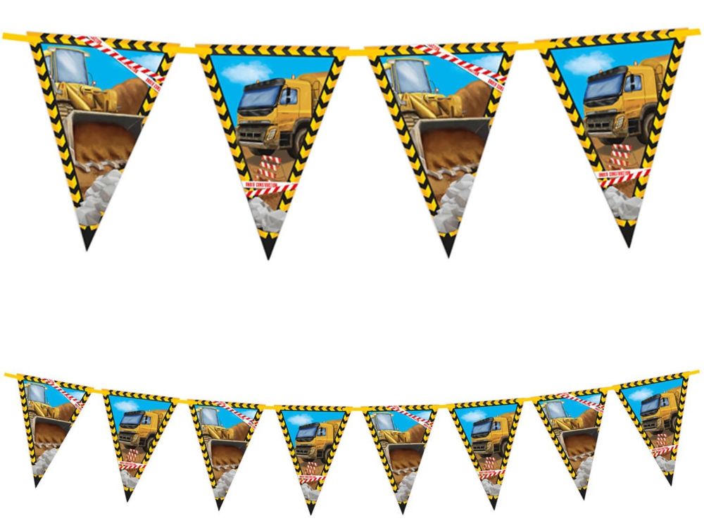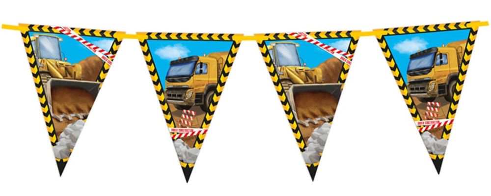 Achtung, hier geht`s zur Baustelle! Diese Next Generation FSC Construction Wimpelkette lässt das Herz jeden kleinen Bauarbeiters höher schlagen. Sie misst eine Länge von etwa 2,3m, besteht aus insgesamt 9 Flaggen und wurde mit Baustellenfahrzeugen liebevoll gestaltet.